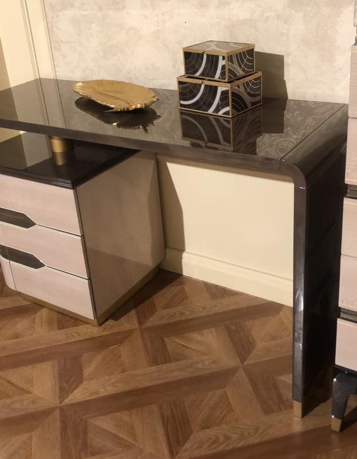 Вся мебель выполнена из натуральных высококачественных материалов: массив бука, шпон ценных африканских пород дерева, нержавеющая сталь.